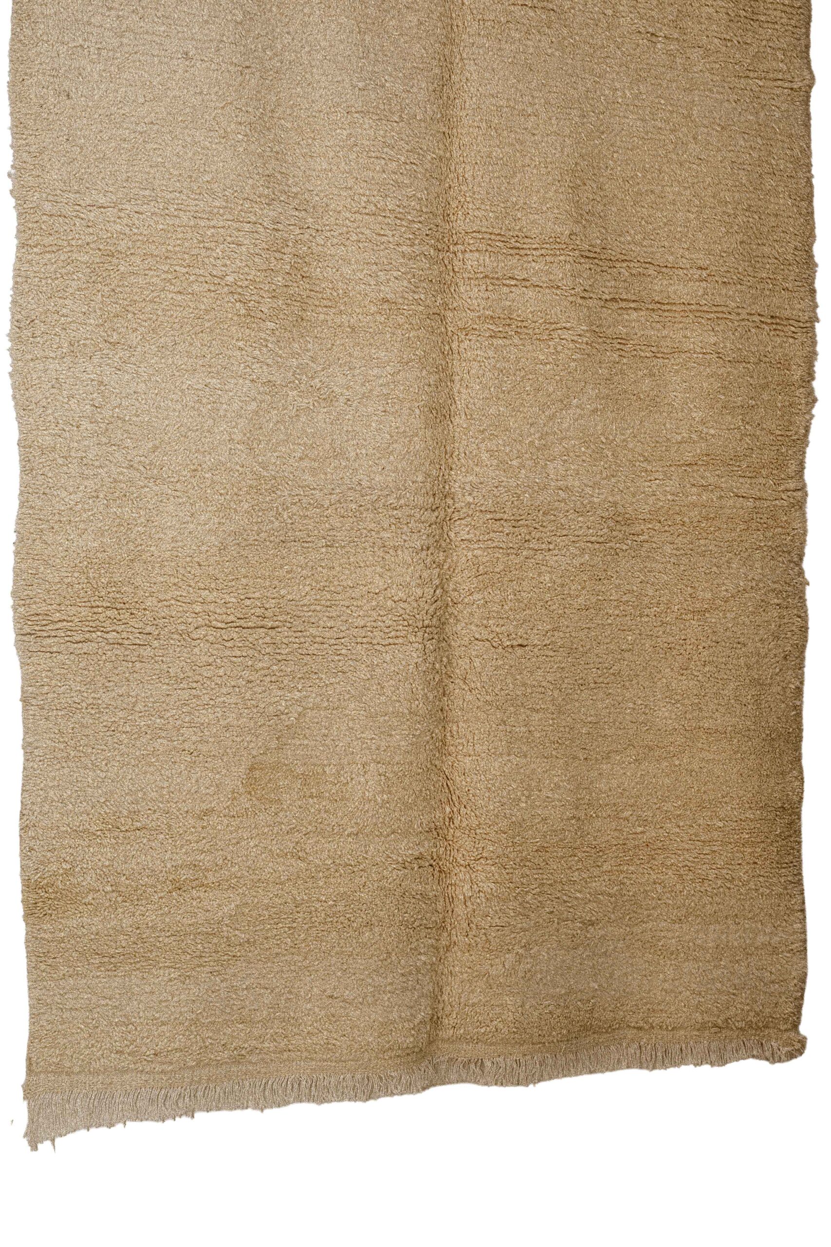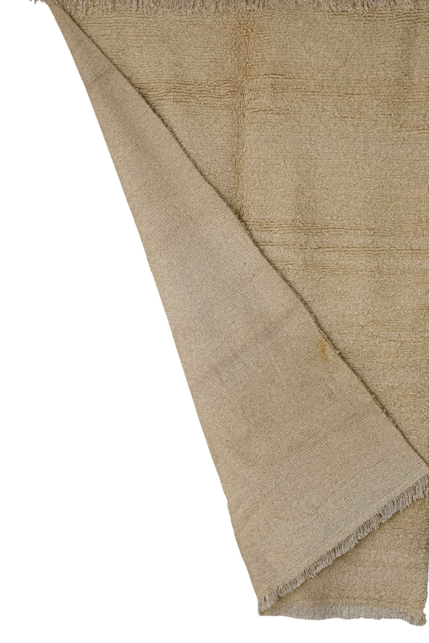 This authentic, hand-woven Moroccan Berber rug celebrates the beauty of pure, unadorned craftsmanship. Stripping away complex patterns, this piece relies entirely on its magnificent texture and the high quality of its natural wool to make a statement.