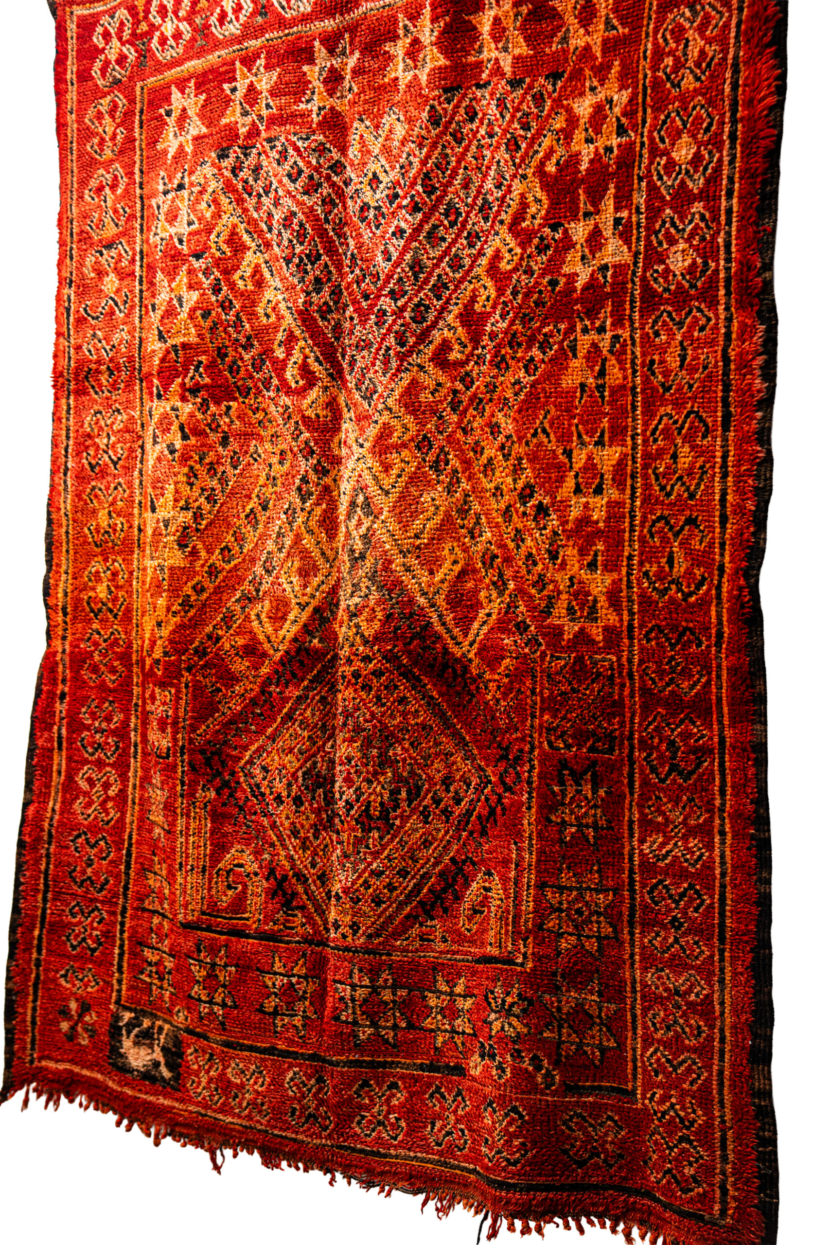 Extraordinary Vintage Moroccan Rug: Saffron & Red Medallion