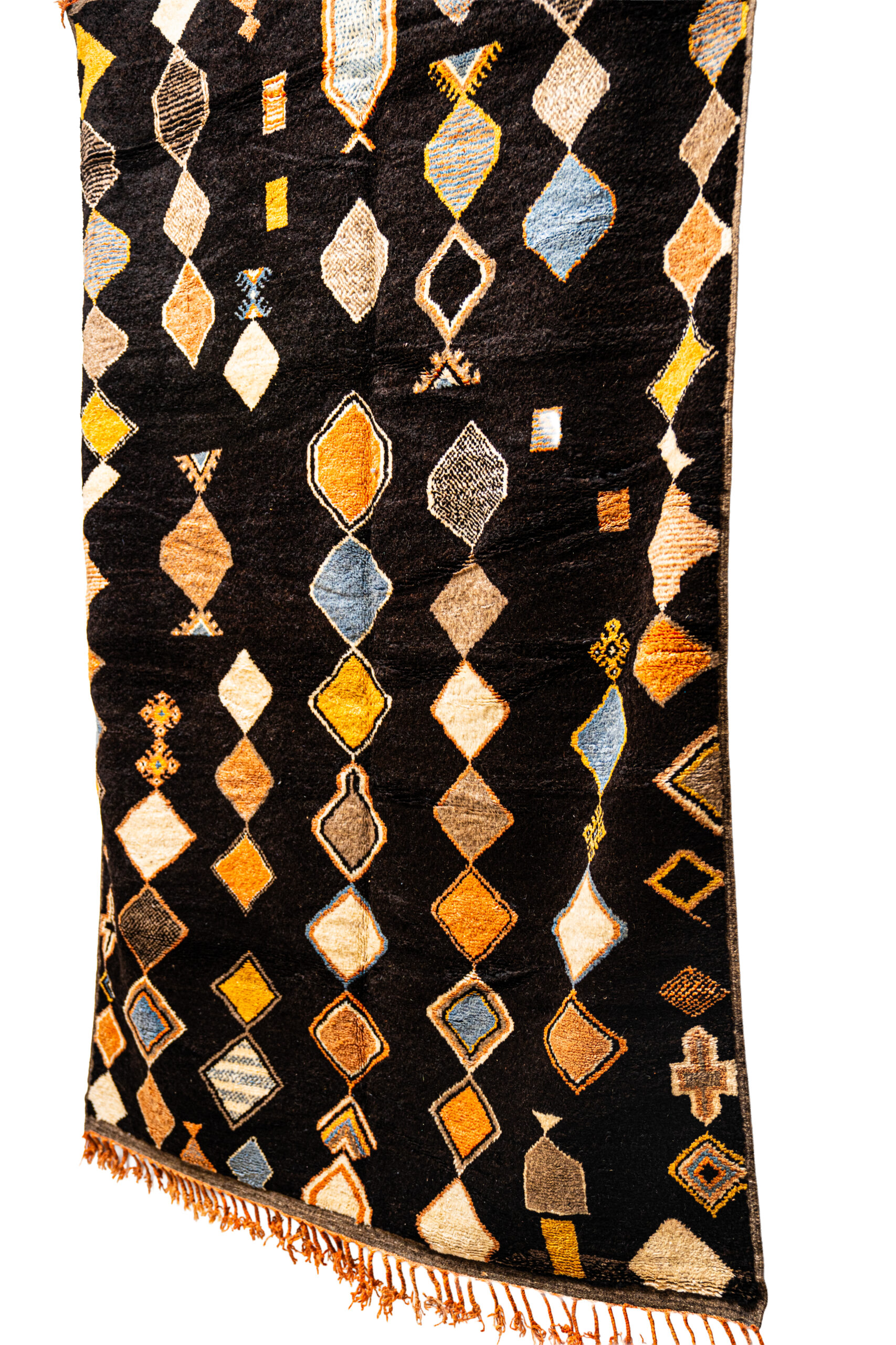 Extraordinary Azilal Rug: Black Ground Abstract Diamond Cluster