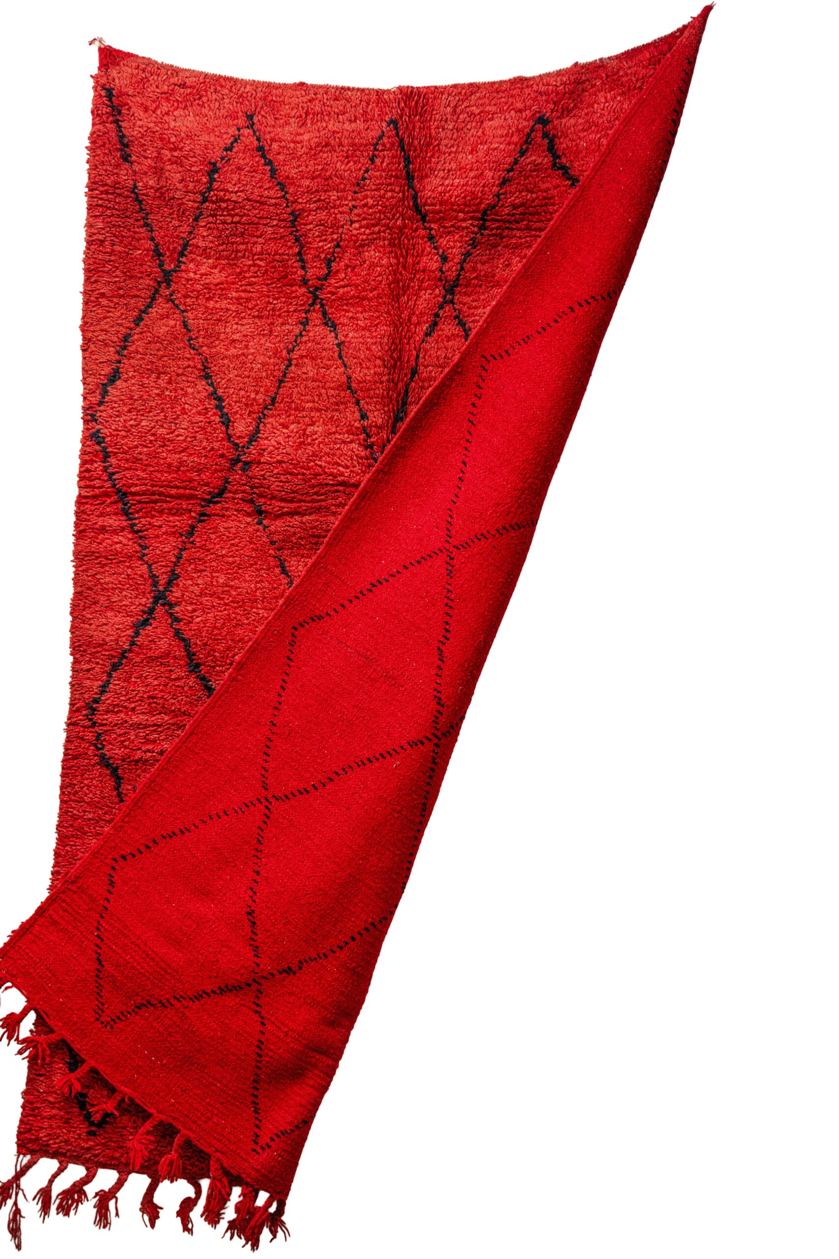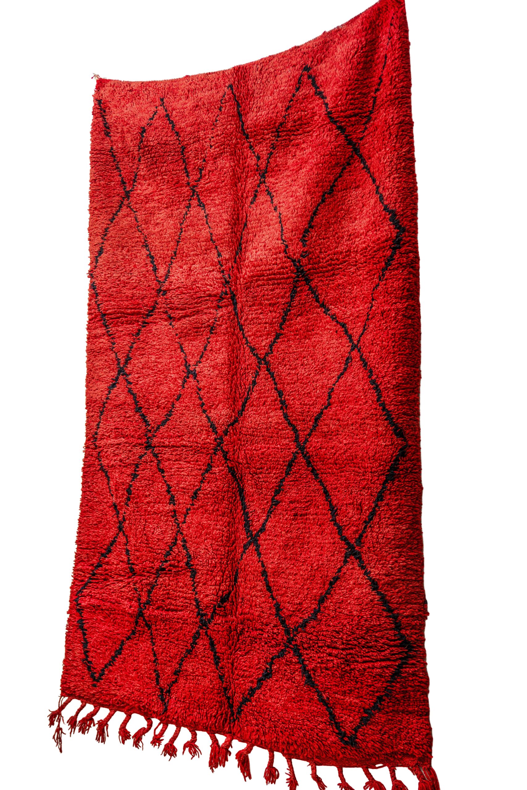 Be the first to review “Hand-Knotted Moroccan Beni Ouarain Rug – Deep Red Field with Black Diamond Lattice”