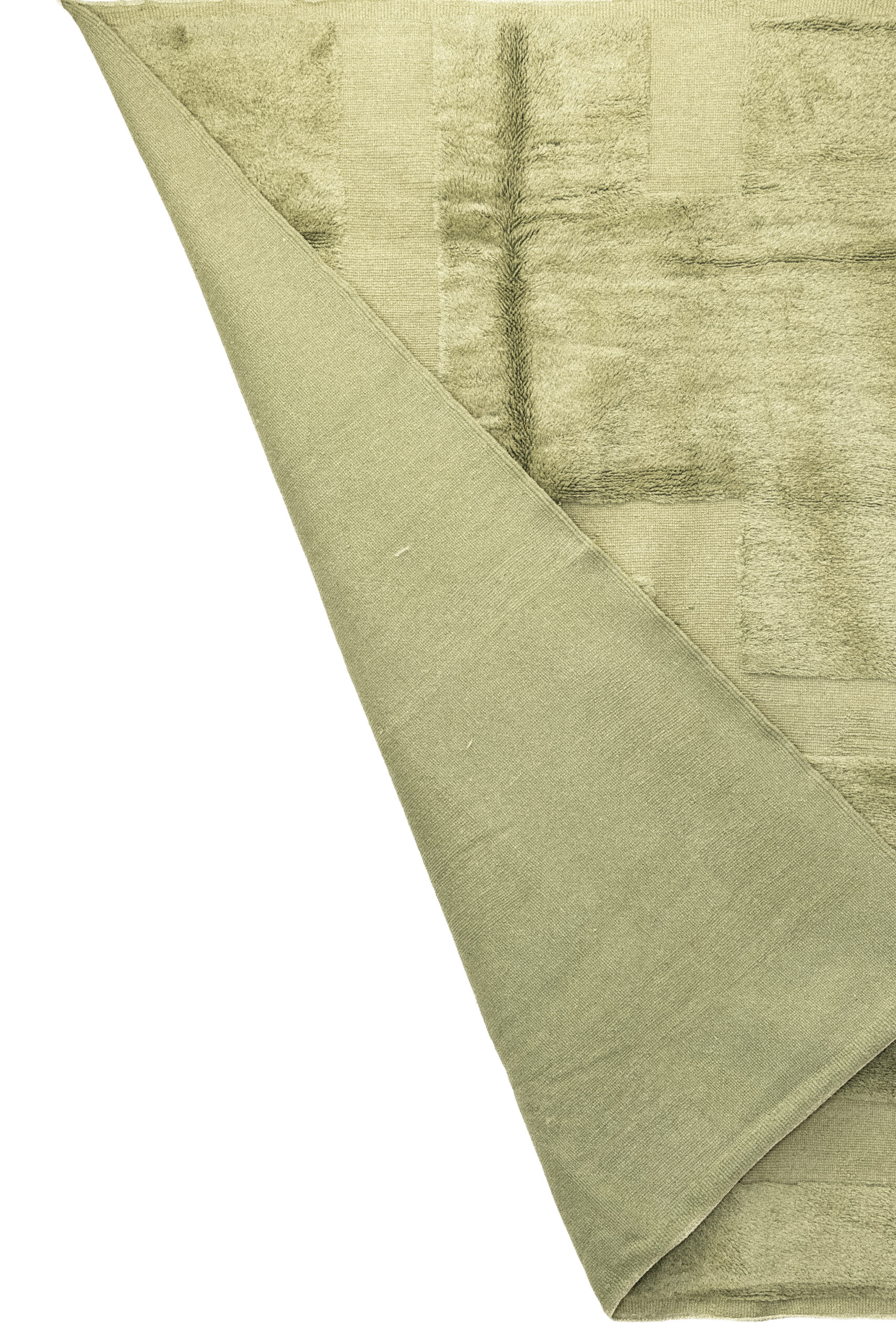 Color Palette (Monochrome): Woven entirely in a uniform, refreshing olive/pistachio green, this piece relies on the natural play of light and shadow across its varied textures to reveal its design, rather than relying on contrasting colored yarns.